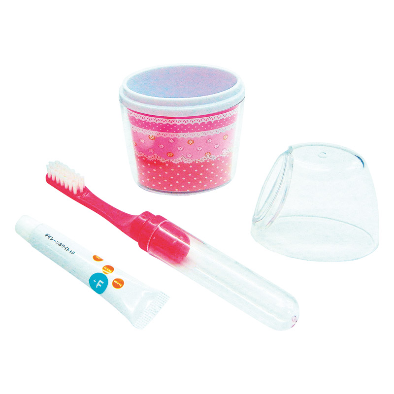 歯ブラシ(約155×22×15mm)・歯磨き粉(8g)・ケース(約107×60×34mm)×各1
