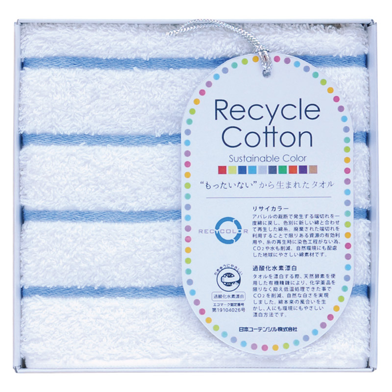 焼却処分されていたアパレルの裁断過程で出る端切れを再生した綿糸を使用した”もったいない”から生まれた地球に優しいタオルです。