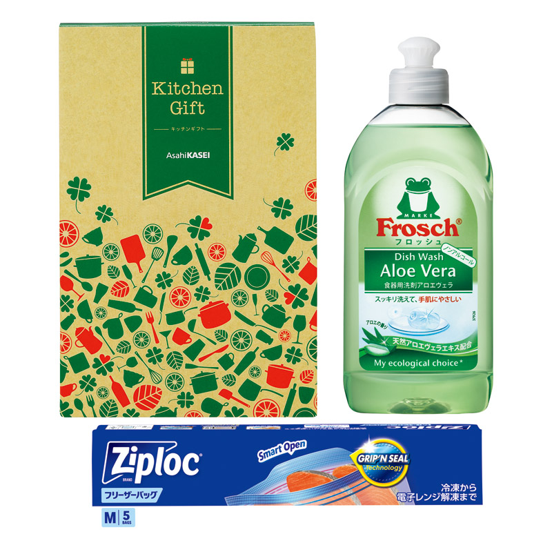 ジップロックフリーザーバッグ(M5枚)・フロッシュ食器用洗剤アロエヴェラ(300ml)×各1