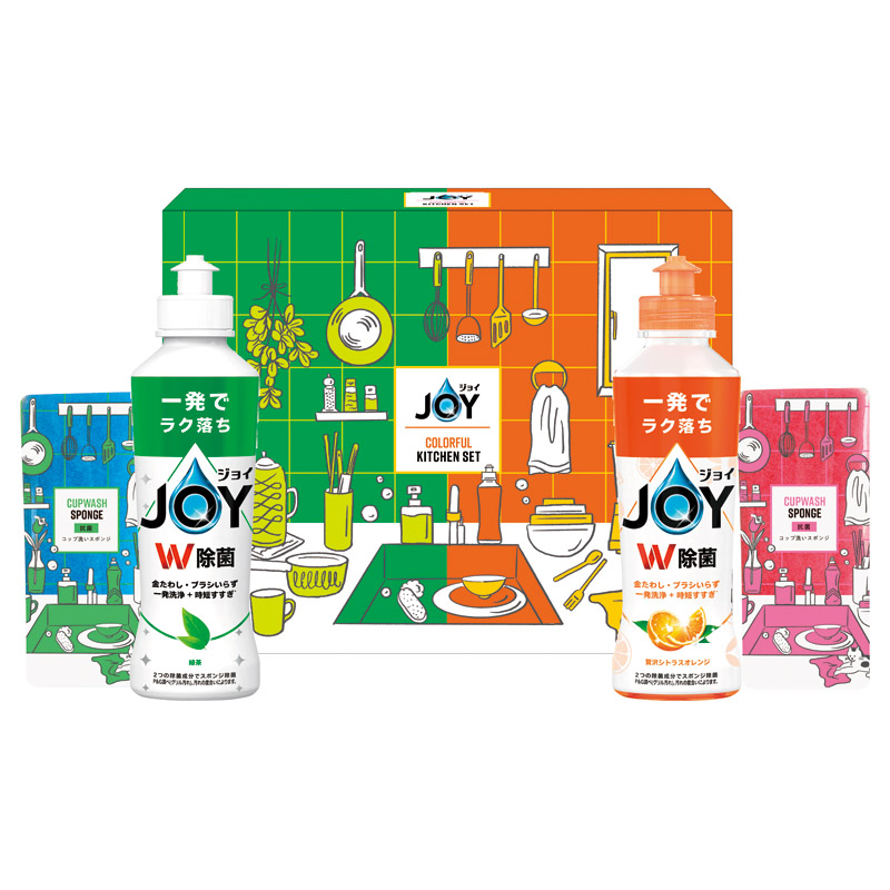 除菌ジョイコンパクト(オレンジの香り・緑茶の香り)(170ml)×各1、コップ洗いスポンジ×2