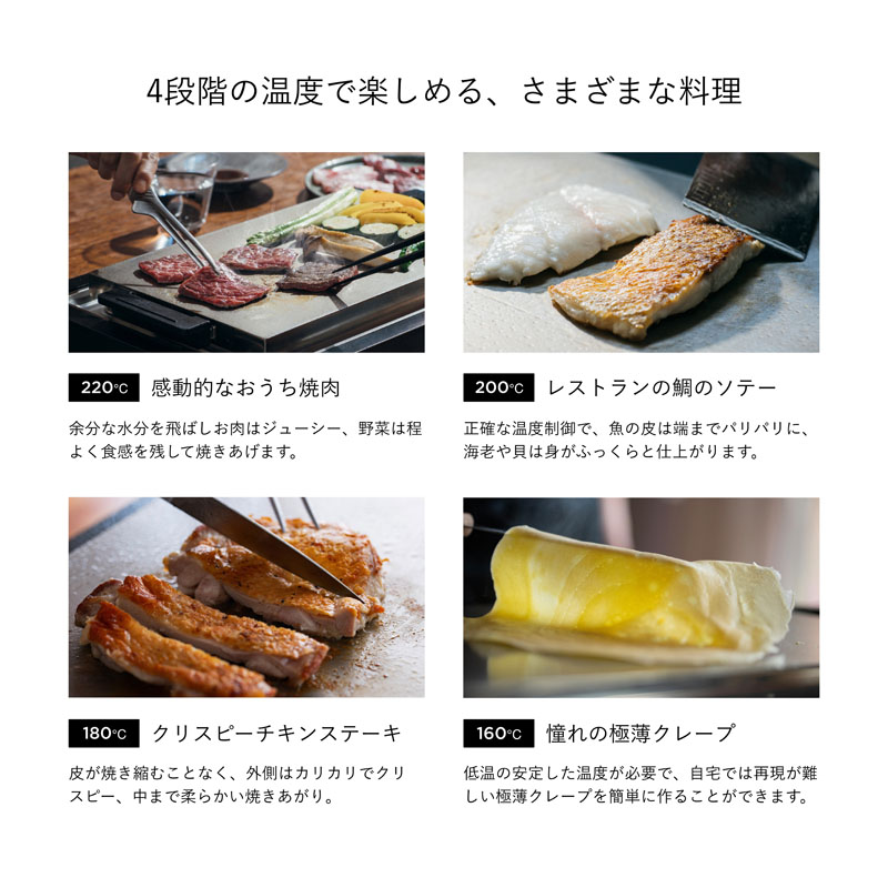 お店で食べたような美味しいステーキを家族や友人に振る舞えたなら…そんなニーズの高まりを叶えるのがバルミューダ・ザ・プレート プロ。家で、ホットプレートで、できると思っていなかった美味しさを楽しめる唯一のホットプレートです。