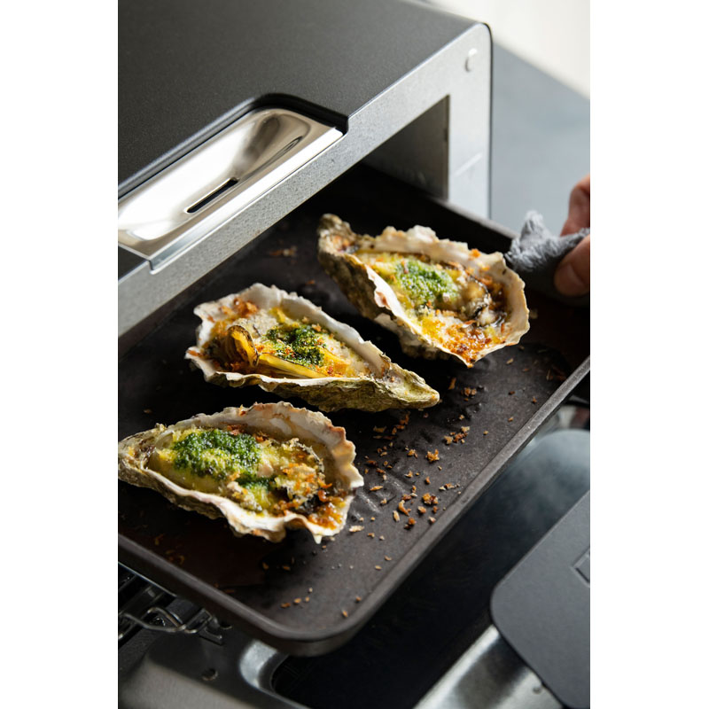 バルミューダだけのスチームテクノロジーと温度制御により、表面はさっくりと香ばしく、中には水分を閉じ込めてふわふわに窯から出したばかりの焼きたての味を再現します。