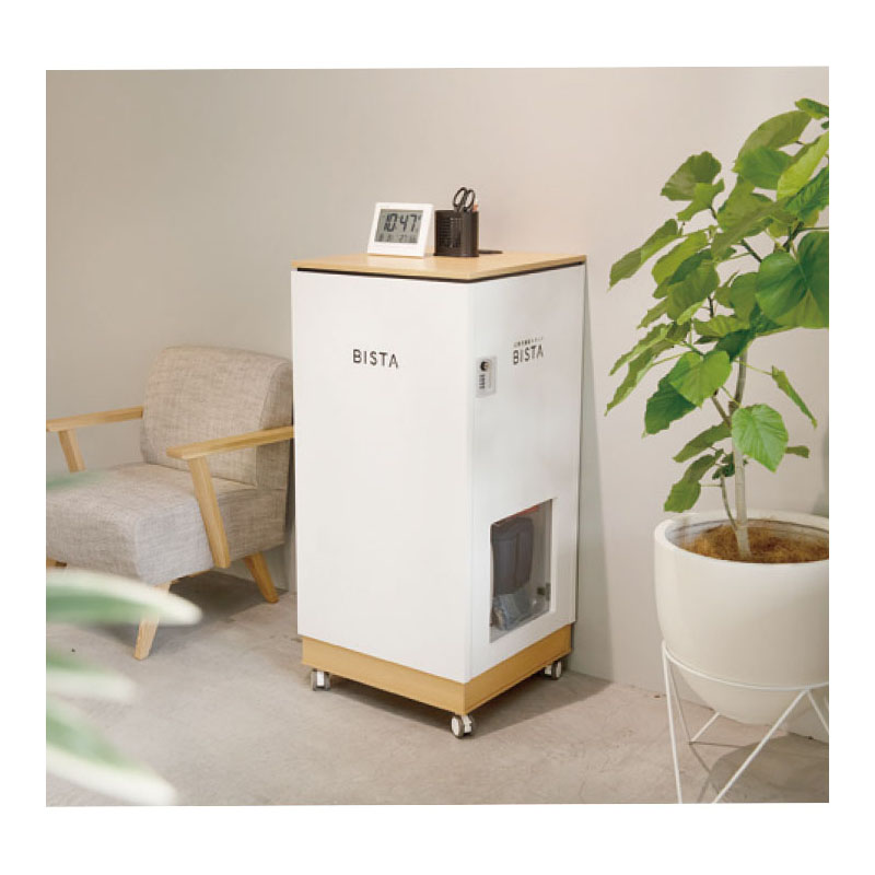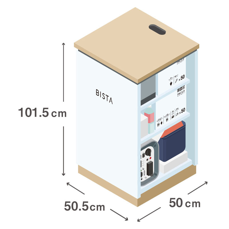 BISTAは、厳選された防災用品がオールインワンで揃ったスマートなデザインの災害用備蓄スタンドです。防災用品を倉庫やロッカーに置くのではなくロビーやエントランス、応接室など、あえて日常的に人が行き交う空間に置くことで普段から防災を意識することができます。
