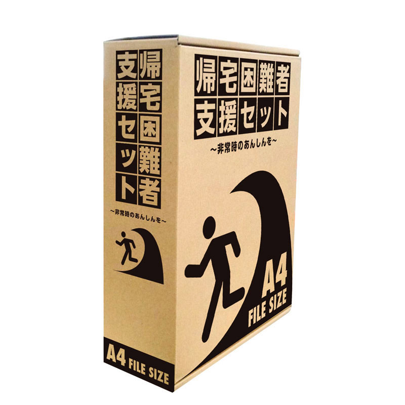 箱がブック式で事務所などにもそのまま置くことも出来、箱・非常袋に名入れ可能です