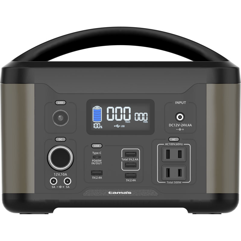 いろいろな電化製品の充電に使える大容量ポータブル。キャンプや災害時の電源供給に最適な製品です。 充電池容量506Wh/136800mAhタイプ。USB-Aポート×4/USB-Cポート×1/DCソケット×1。バックライト付き液晶ディスプレーで暗い場所でも安心