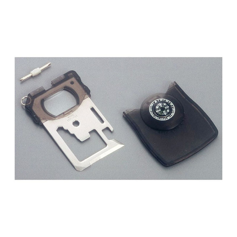 ナイフ、栓抜き、缶切り、六角レンチ、蝶ネジ回し、レンズ、コンパス、マイナスドライバー、精密ドライバー(+・-)、定規、キーリング