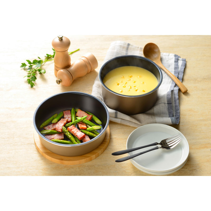 本体:アルミニウム合金、底面:ステンレス鋼、内面:フッ素樹脂加工(ダイヤモンドコート)、外面:焼付塗装