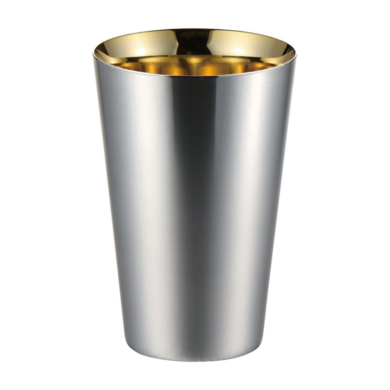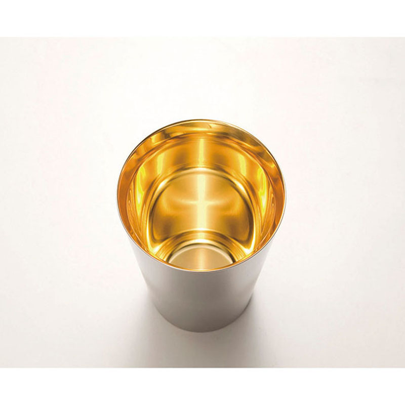 18-8ステンレス(二重構造)、内面:金メッキ(24K)、外面:部分ブラスト加工