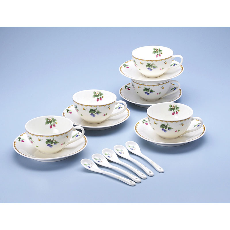 カップ(240ml)×5(φ95×55mm) (材:磁器)、ソーサー×5(φ142×22mm) (材:磁器)、スプーン×5(135mm) (材:磁器)