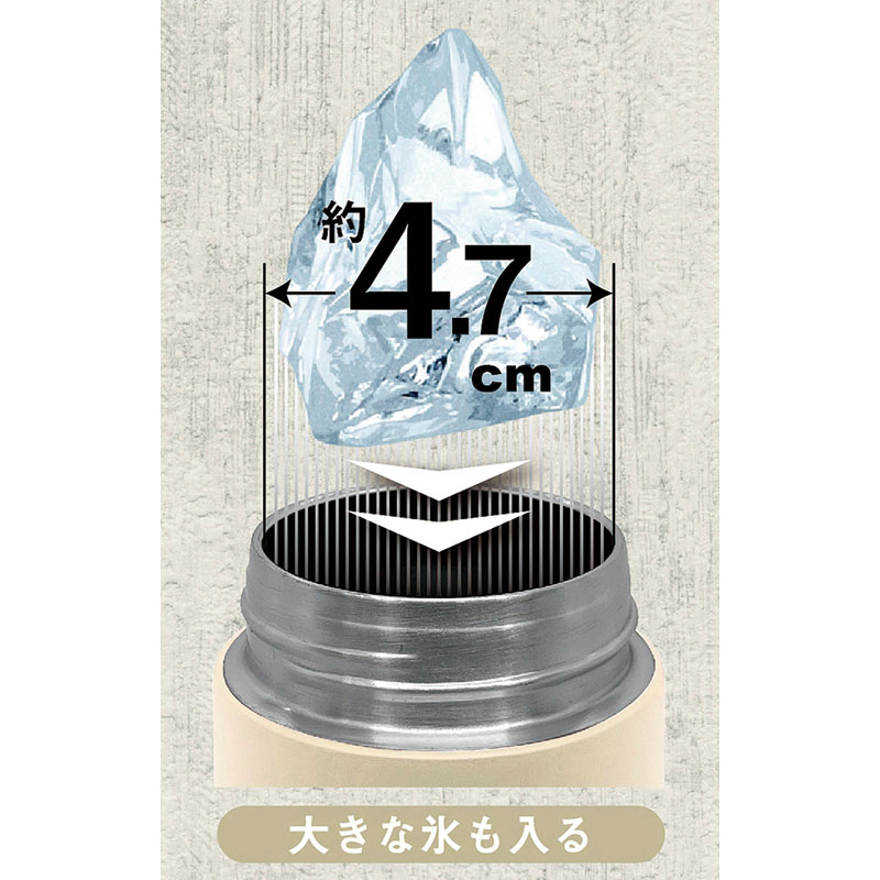 真空構造でおいしい飲み頃長持ち!大きな氷もラクラク入る大口径。