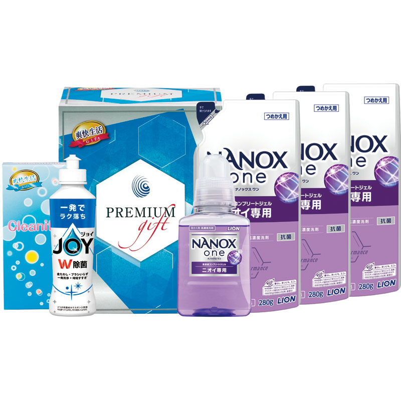 ライオン NANOXoneニオイ専用 特撰品本体(380g)×1、ライオン NANOXoneニオイ専用 特撰品詰替(280g)×3、P&G 除菌ジョイコンパクト(170ml)×1、洗濯ネット×1