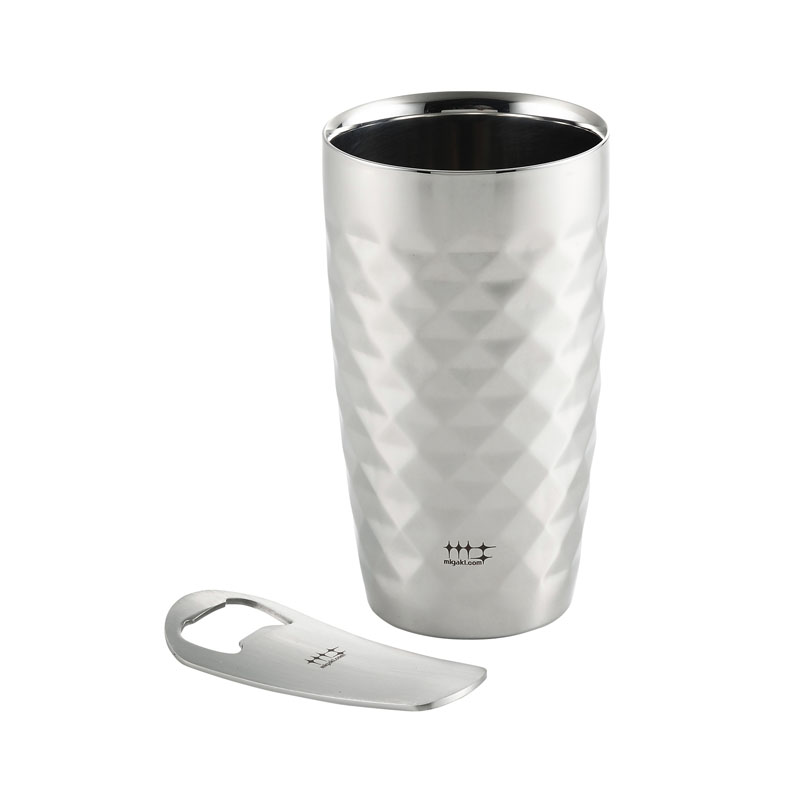 ”ロゴ、名入れ・記念品に!” 『二重ビアタンブラーダイヤ(栓抜付)』