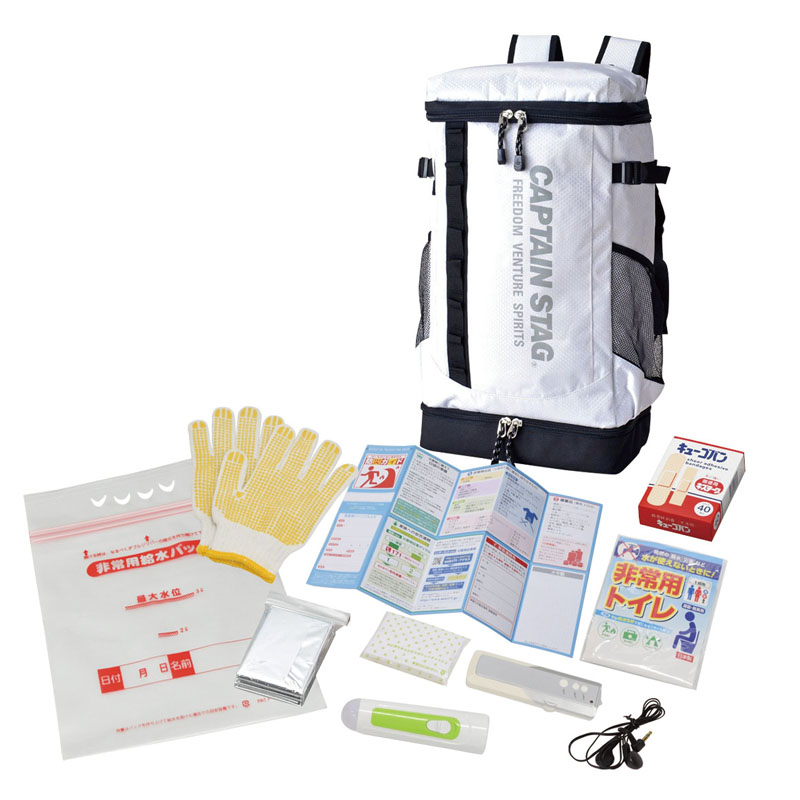キャプテンスタッグのリュックを使用した防災セットです。