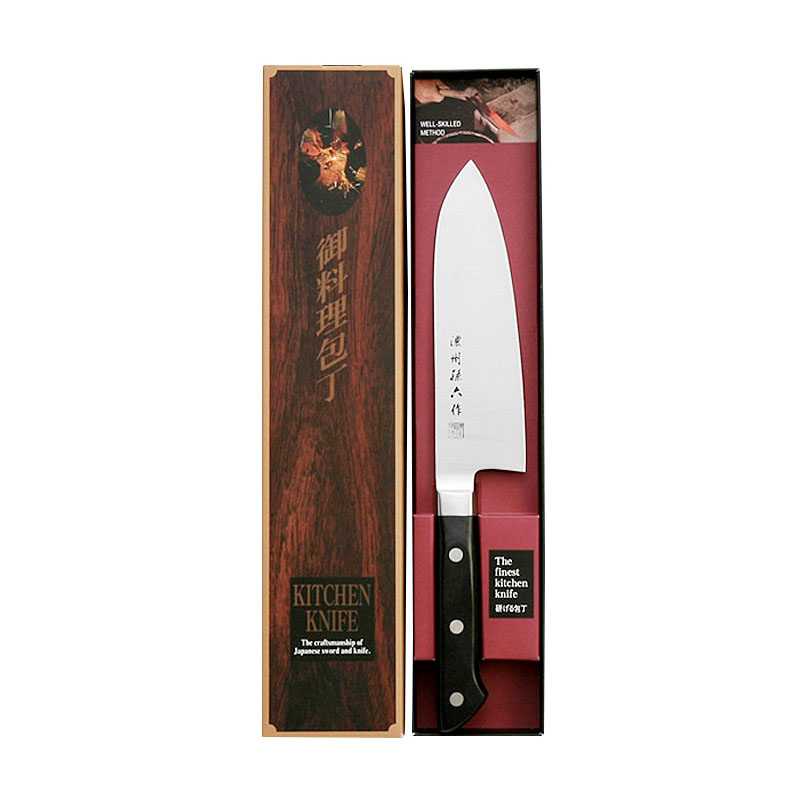 モリブデンステンレス刃物鋼、柄:黒色積層強化木