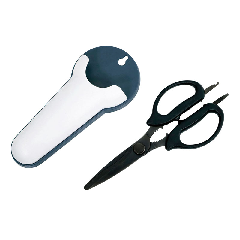 キッチンハサミ×1(220×90×12mm) (材:ステンレススチール(チタンコーティング)、ABS)、ケース×1(204×93×30mm) (材:ABS)