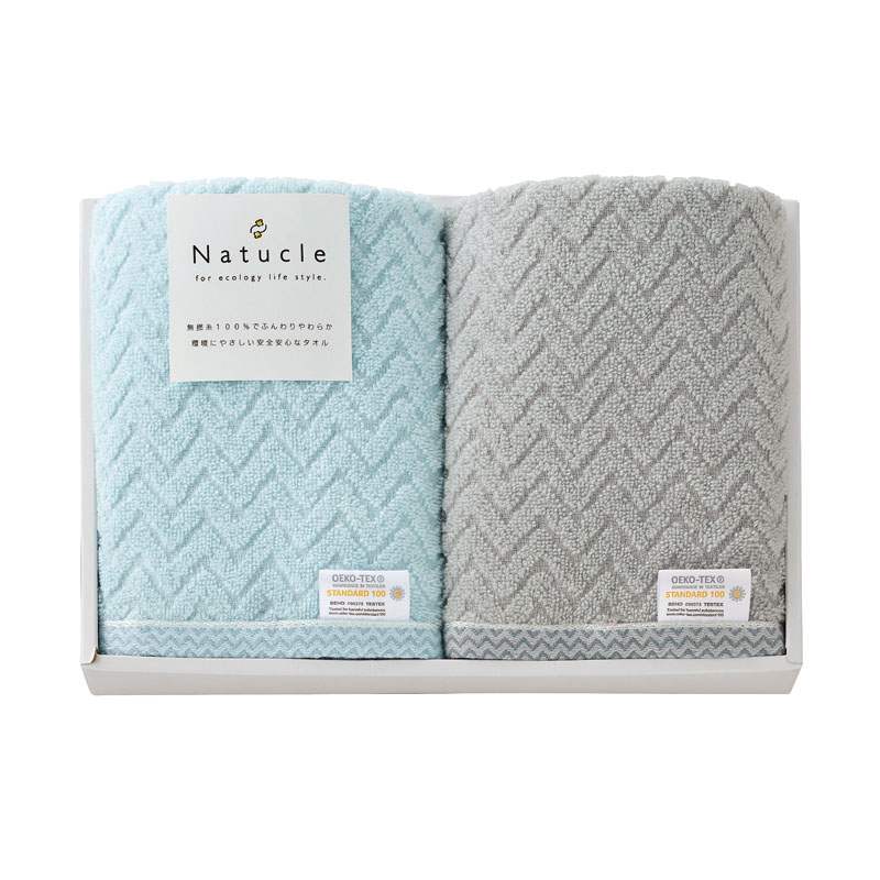 フェイスタオル×2(340×800mm) (材:綿100%(無撚糸100%))