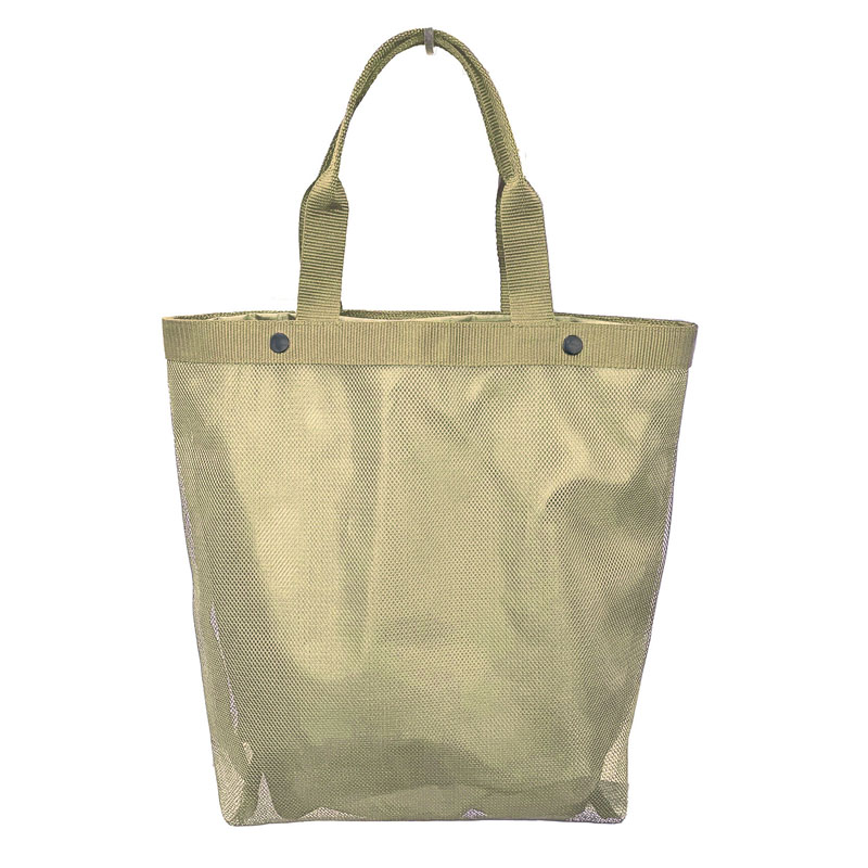 いざという時は2種類のバッグに分離できます。 1.見せたい物と見せたくない物、汚れた物と汚したくない物を分けて収納可能。 2ボタンを外す事で2種類のバッグに分離可能。 3.メッシュごしに見えるさりげない名入れ。 4.速乾性に優れたメッシュトートと、撥水性に優れたテントクロストートの2層構造。