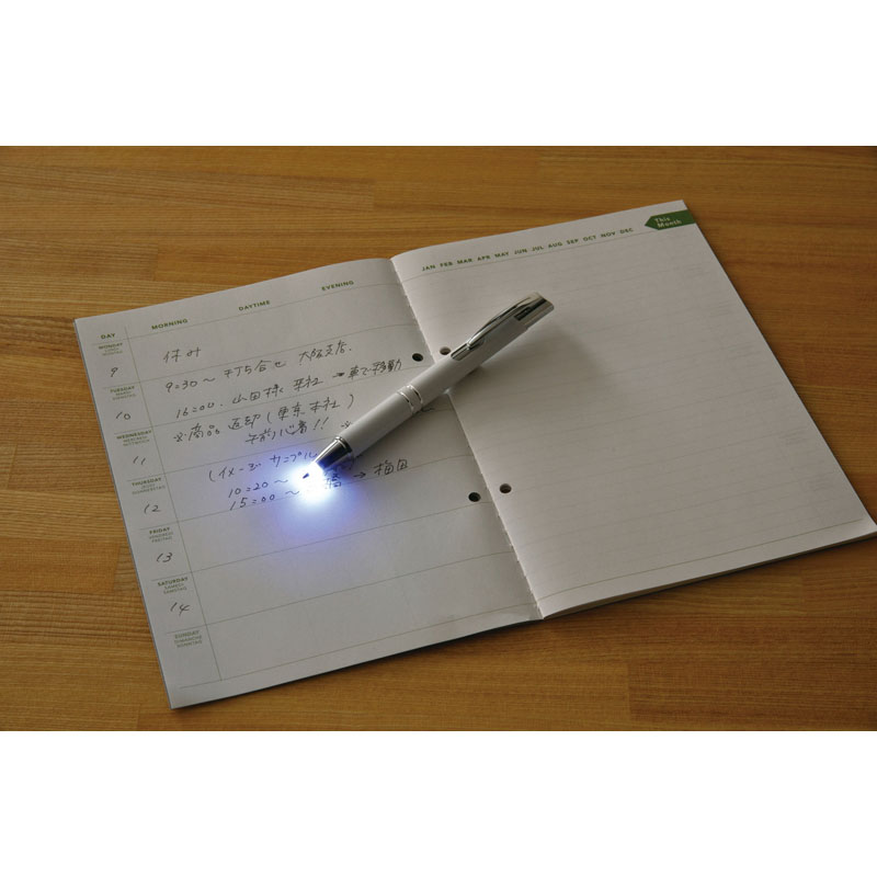 ペン先が光って暗い所でもメモがらくらくとれます。