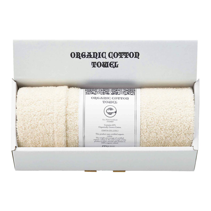 フェイスタオル×1(340×800mm) (材:綿100%(パイル部分オーガニックコットン100%))