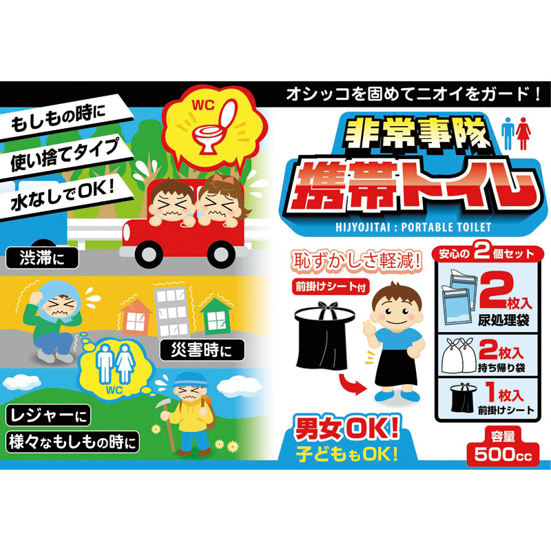 渋滞、災害時、レジャーなど様ーなもしもの時に。使い捨てタイプで水なしでOK!
