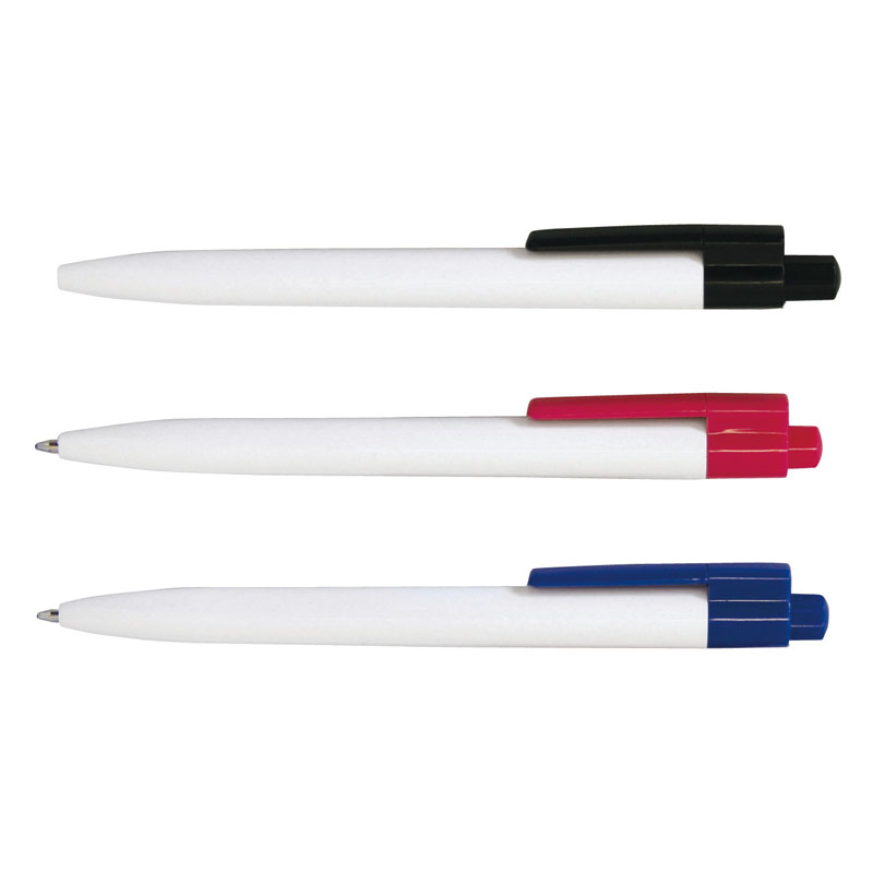 フルカラーの印刷も映える!名入れを重視した白軸ノック式ボールペン。