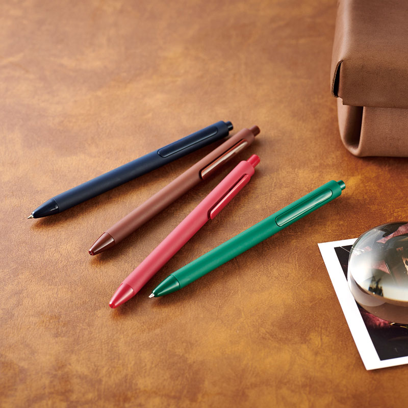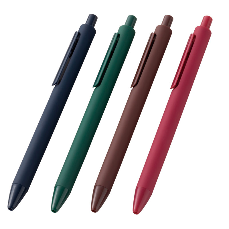 クリップが収納可能!全体がラバー仕様のおしゃれなデザインのペンです。