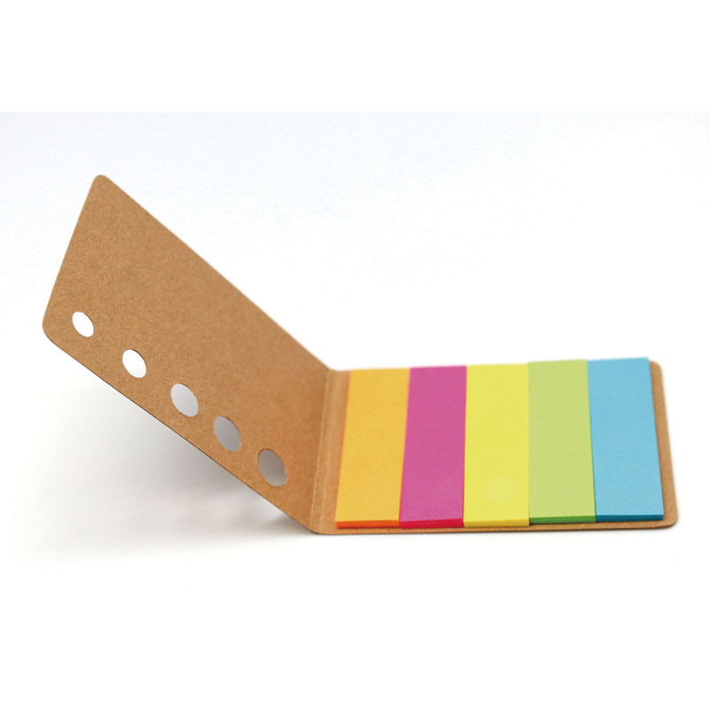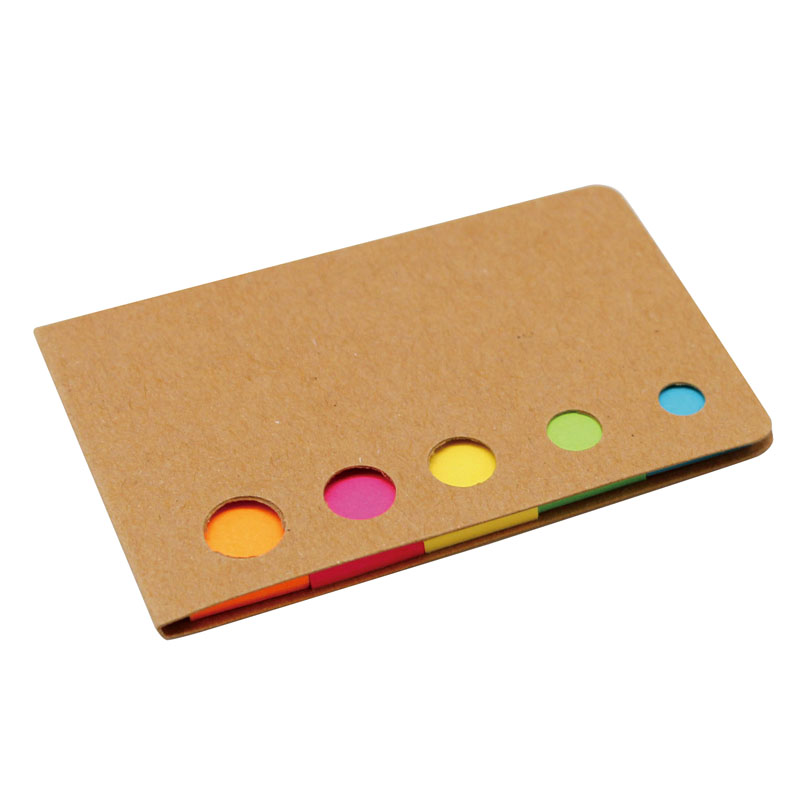 付箋(小)5色のセット。 表紙は再生クラフトを使用したエコ商品。 ポケットサイズで持ち運びに最適!