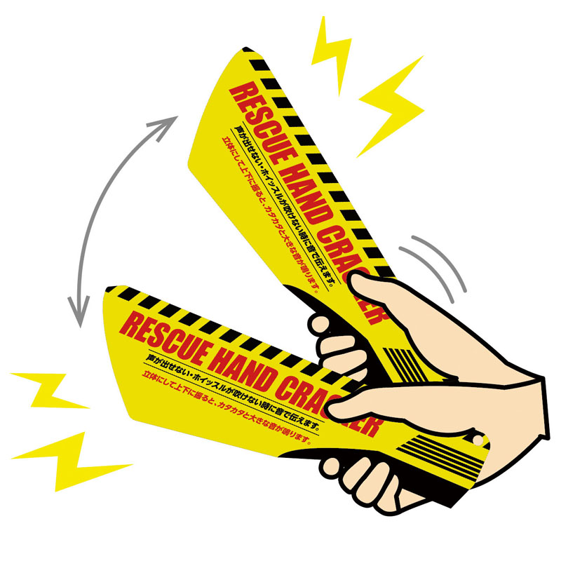 振るだけでカタカタと音が鳴ります!非常時に声が出せない・ホイッスルが吹けない場合に音で伝えます。