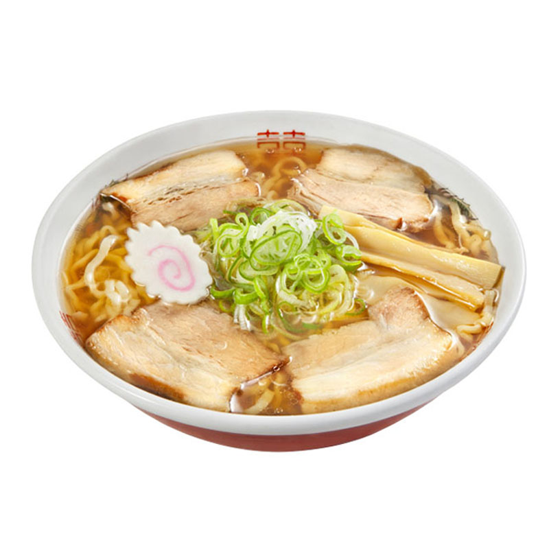 豚骨と鶏がらのあっさりとした醤油スープに太ちぢれ麺。喜多方で磨かれた忘れられない醤油味。