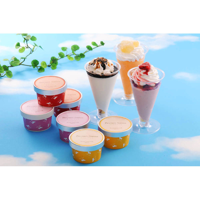 アイス バニラ(80ml)×2、アイス ストロベリー(80ml)×2、アイス 赤肉メロン(80ml)×2、パフェ ミルク&チョコ(200ml)×1、パフェ メロンシャーベット(200ml)×1、パフェ いちご(200ml)×1