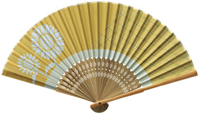 伝統文様と夏を感じるモチーフを取り入れた扇子。 青海波と金魚・麻の葉と花火・七宝と水風船・ 業平菱とひまわりなど、和を感じるデザイン。