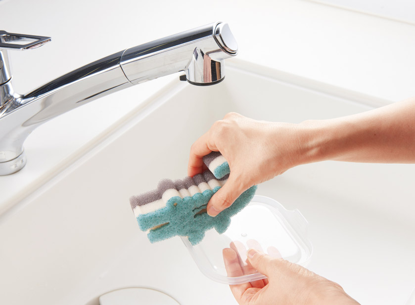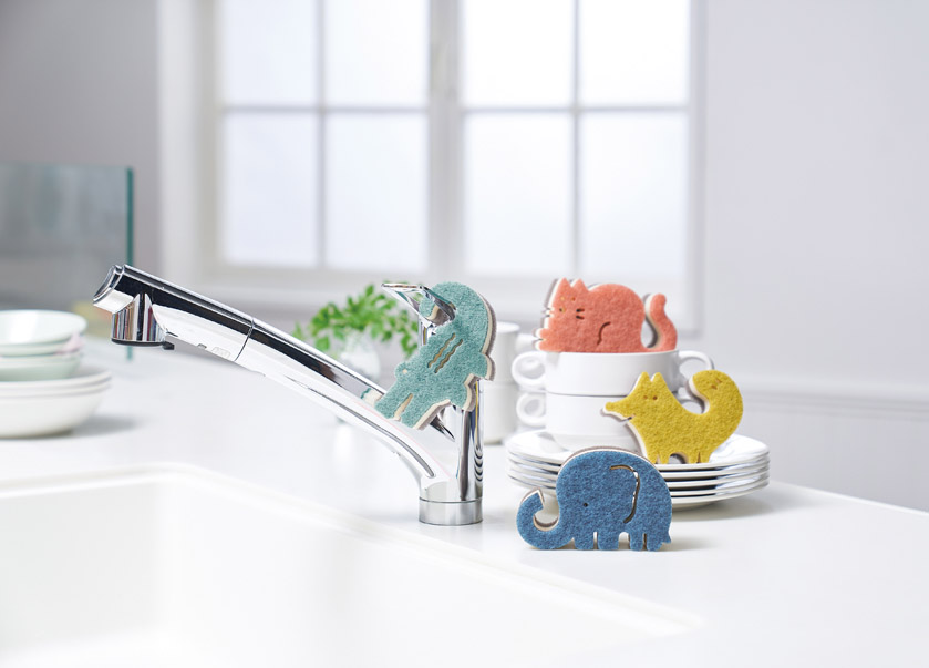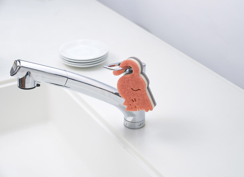 かわいい見た目とおしゃれな色合いだけでなく、 蛇口に掛けられる機能性も兼ね備えた、 3層タイプのアニマル型スポンジです。