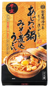 内容量/半生うどん100g×2・あじみそ×2・かつおだし×2、賞味期間/製造日より120日