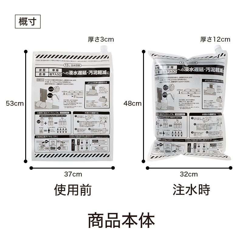 使用前/約53×37×3cm 注水時/約48×32×12cm