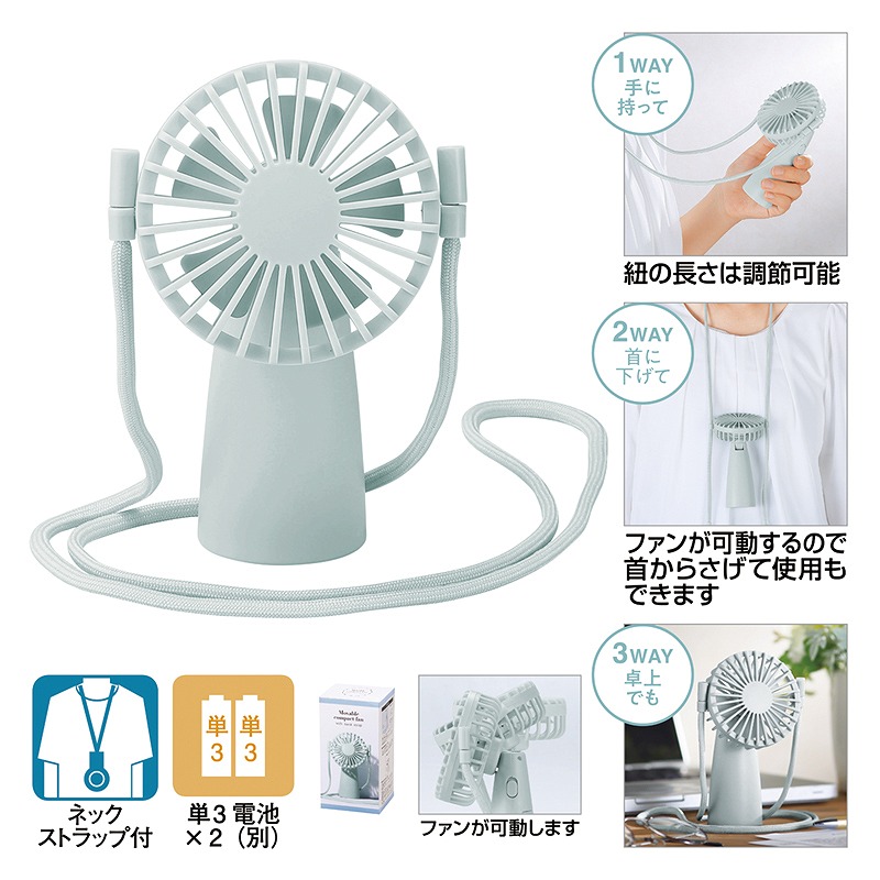 ”販促品 ノベルティ グッズ” 『ネックストラップ付き可動式コンパクトファン』