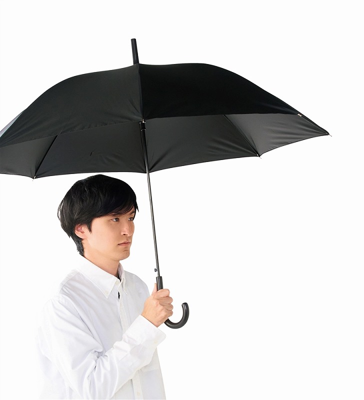 黒の内生地が、刺すような太陽の光と熱をやわらげます。ここ数年で男性にも日傘の使用が浸透してきました。日常生活にすら影響を及ぼすような近年の日本の猛暑を賢く乗り切りましょう。こちらはワンタッチで開くジャンプ式。