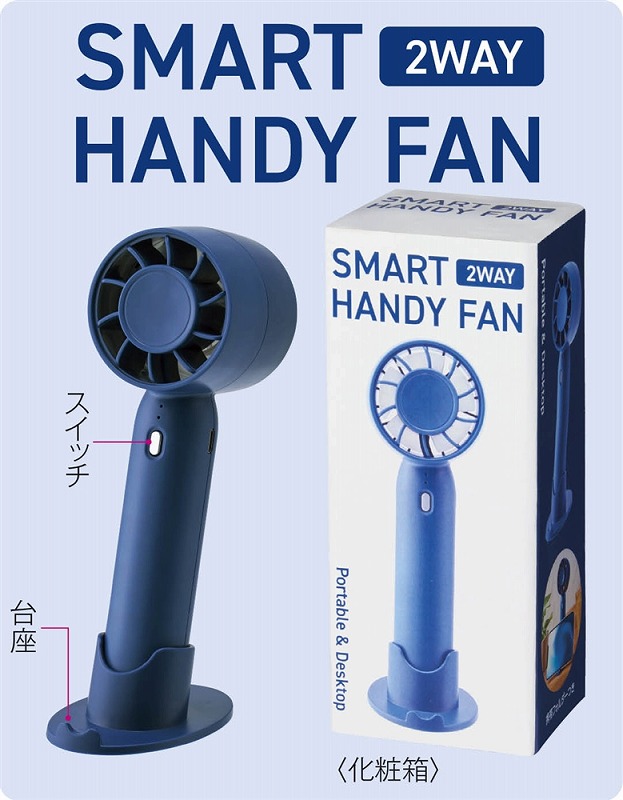 スマホスタンドにもなる台座が付いているので動画視聴や・勉強時間にも重宝します。ヘッド部分が小さめでスマートなので、バッグなどに入れて持ち歩くのにも便利です。風量は弱・中・強の3段調節ができます。名入れ印刷も可能ですのでぜひご利用ください。