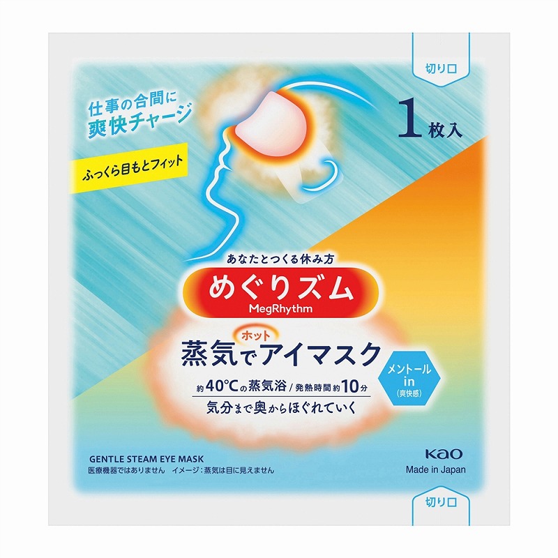 心地よい蒸気が10分程度続き、はりつめた気分をじんわりほぐします。さらに、メントールの心地よい刺激で、気分爽快。仕事や勉強などの合間におすすめです。メントール配合(爽快感)。ユーカリの香り。