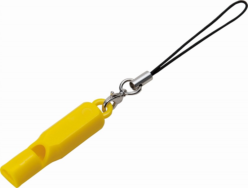 携帯電話やキーホルダーに取り付け可能なストラップ付。日本の安全基準に準じた材料、着色料にて製造しております。災害・災難時はもちろん、通学・通勤、夜間ウォーキングの安全対策として。