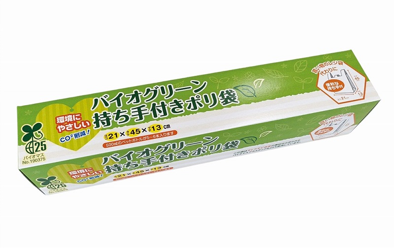 便利な持ち手付きポリ袋(レジ袋)。 ■バイオマスマーク25%(化粧箱:FSCマークあり) ■500mlのペットボトルが5-6本入ります。 ■レジ袋・お部屋のゴミ箱用、クルマのゴミ入れなどに使用 ■化粧箱オリジナルOK、名入れOK