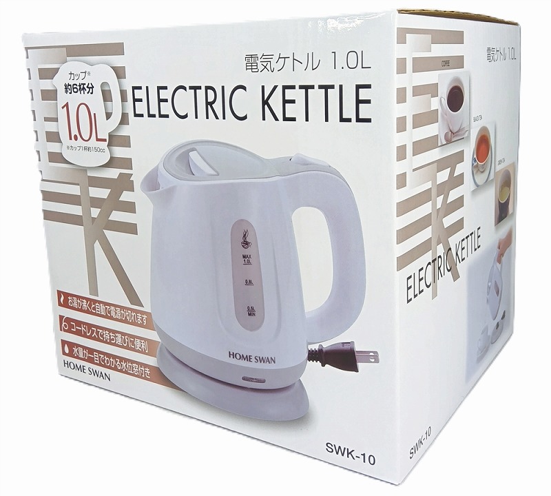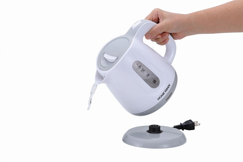 お湯が沸くと自動で電源が切れます。コードレスで持ち運びに便利。ON/OFFが分かるランプ付。