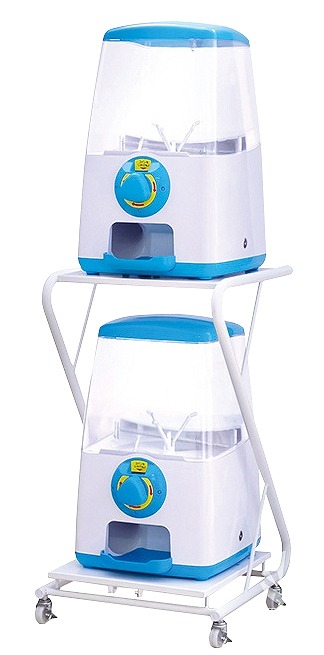 ガチャガチャの中身を2種類で展開したい時にも便利です。下段なら小さいお子さまでも回しやすい。キャスター付きで移動もラクラクです。