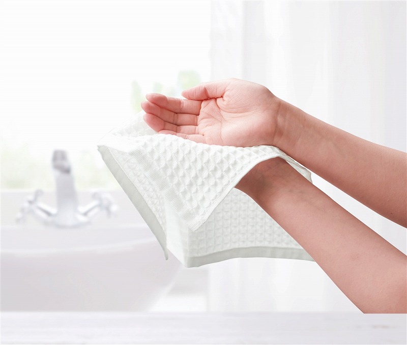 回収された使用済ペットボトルを原料とし、マテリアルリサイクル工程を経て生産されたポリエステル繊維を約60%使用したリサイクルポリエステルファイバーです。(500mlペットボトル約1本分ではんどたおる1本分になります)タオルはワッフル織りで伸縮性に優れており吸水性が高くやわらかな特性があります。華やかな和柄デザインの化粧箱入り。