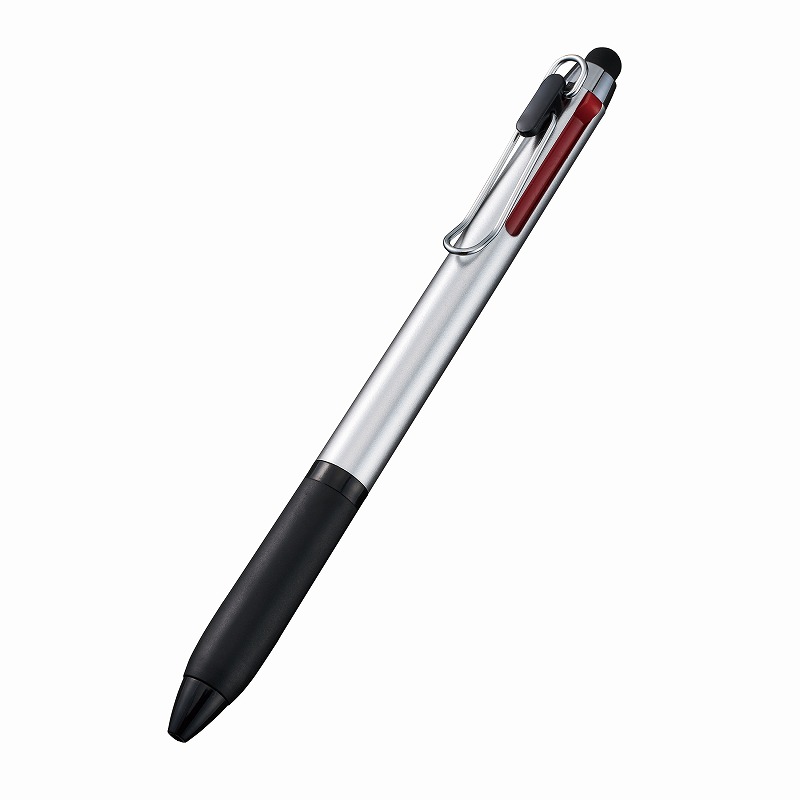 タッチペン付メタルクリップ3色ボールペン(再生ABS) シルバー