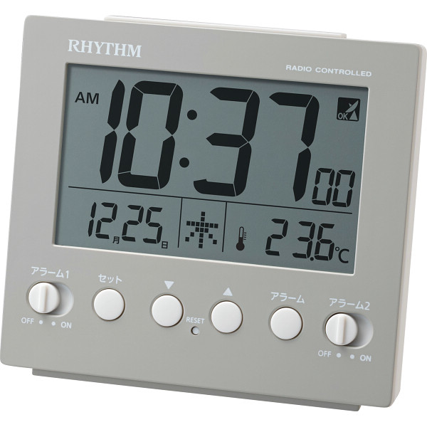 電子音アラーム(4段階に変化)Wアラームカレンダー表示(2099年12月31日まで表示可能)温度表示(-9.9~50℃)単3乾電池2本使用(別売)