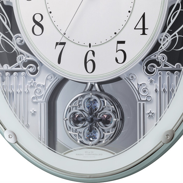コチコチ秒針(お部屋が暗くなると自動的に停止するスリープ秒針採用)オーロラサウンド正時メロディ18曲入り音量調節付メロディON(自動鳴り止め明暗センサー)/OFFスイッチ付電池交換お知らせ機能単1乾電池2本使用(別売)