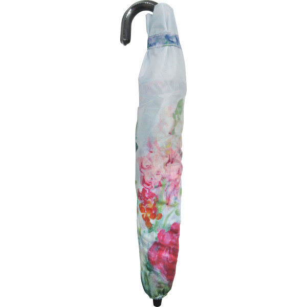 突然の雨も晴れの日もお使いいただける晴雨兼用。傘の外側にもハンドルが付いているので折りたたまずに、そのままでも束ねられて便利。同柄の収納袋付きです。海外の有名作家が描く様ーな花の絵アートを傘にしました。