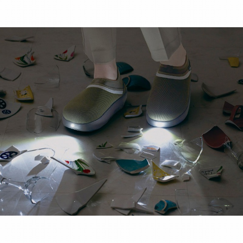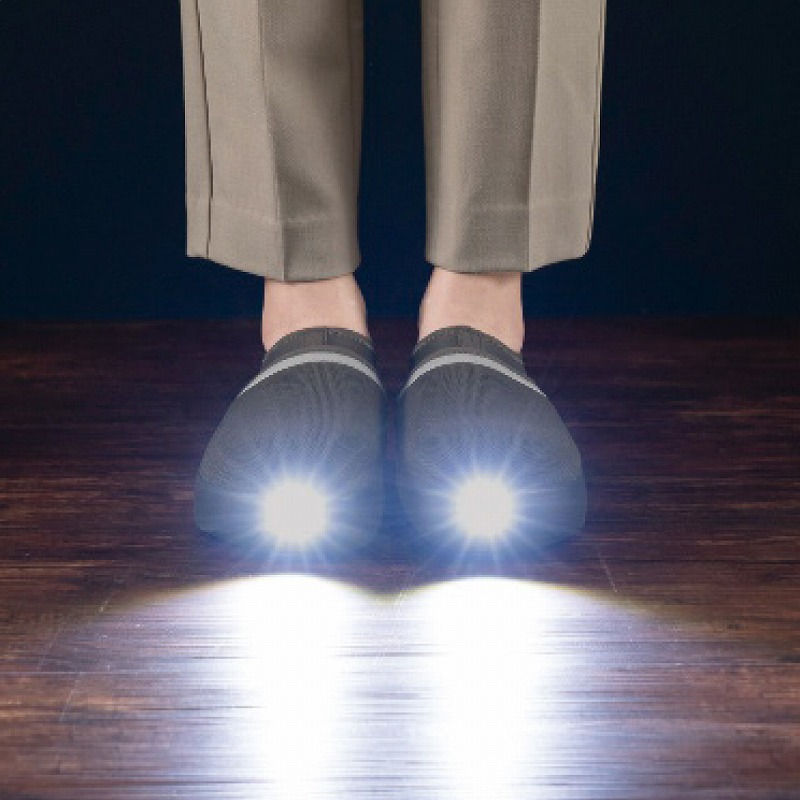 光るルームシューズ。夜間時の移動などにも役立ち、災害時にも安心の発光力。つま先の補強と靴底の踏み抜き防止素材で室内用の安全靴としても抜群の機能性。防災アドバイザー高荷先生が徹底監修。プロの目線から理想的な災害の備えを実現。
