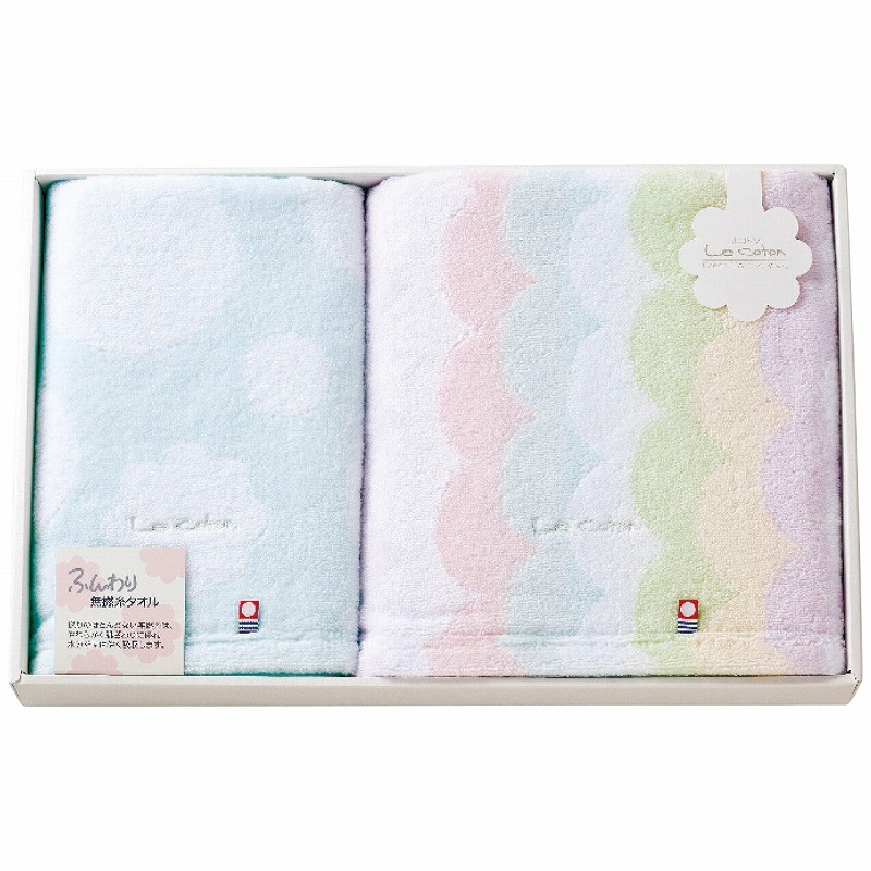 60×120cmバスタオル1枚・34×80cmフェイスタオル1枚・綿100%・[日本製]
