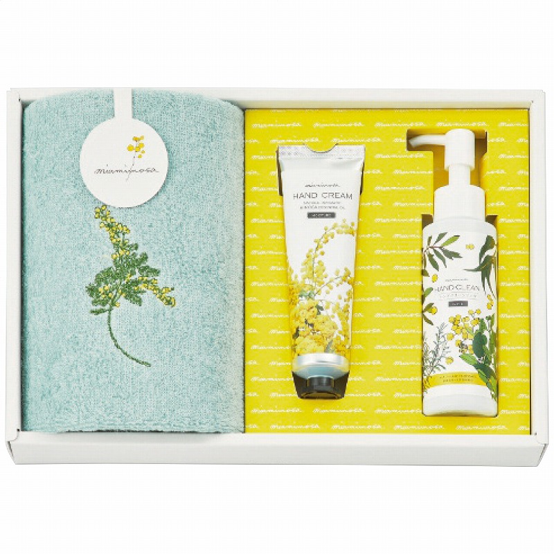 34×35cmウォッシュタオル1枚・綿100%・50gハンドクリーム・100mlハンドクリーンジェル各1本・[日本製]
